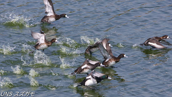 水面を力強くけって飛立つ