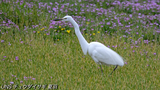 夏に日本で繁殖する亜種チュウダイサギ大きさはアオサギよりやや小さい
