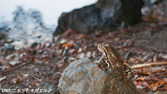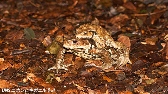 | 冬眠からさめると、繁殖地の池に向かって歩きはじめる |