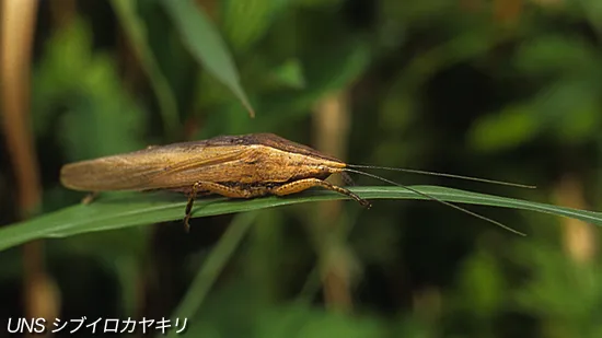 ![]() | 褐色型のみで、クビキリギスのような緑色型はいない |