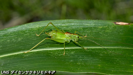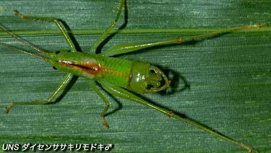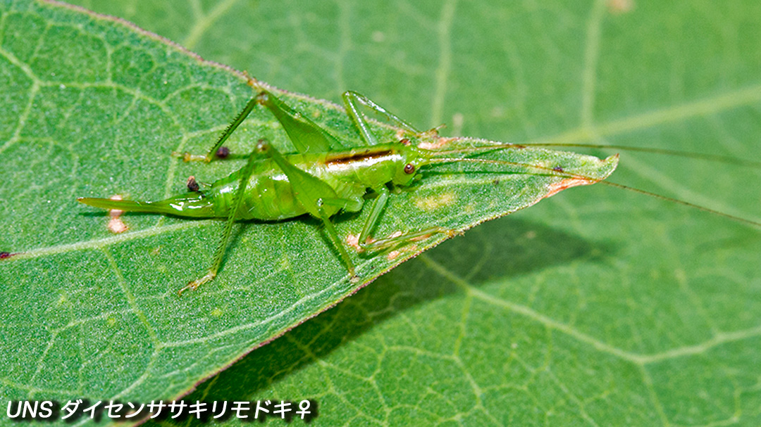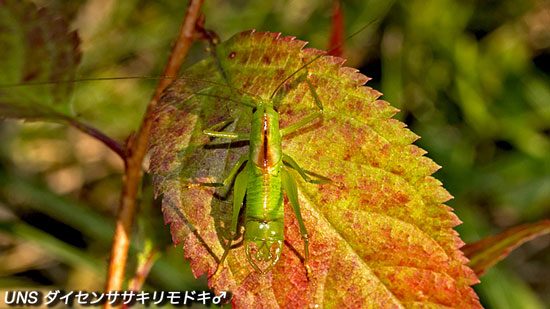ブナ林のササや草の葉に生息