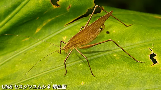 主に緑色をしているが、茶色い個体もまれにいる