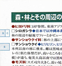 | 図2 30Pのサンプル シロガシラの左端にあるSはさえずり、Cは地鳴き サンヨウクイの左端Sはさえずりを意味し、 「鳴き声タッチペン」、「U-SPEAKバードボイスペン」で タッチするとそれぞれの声が聞けます。 |